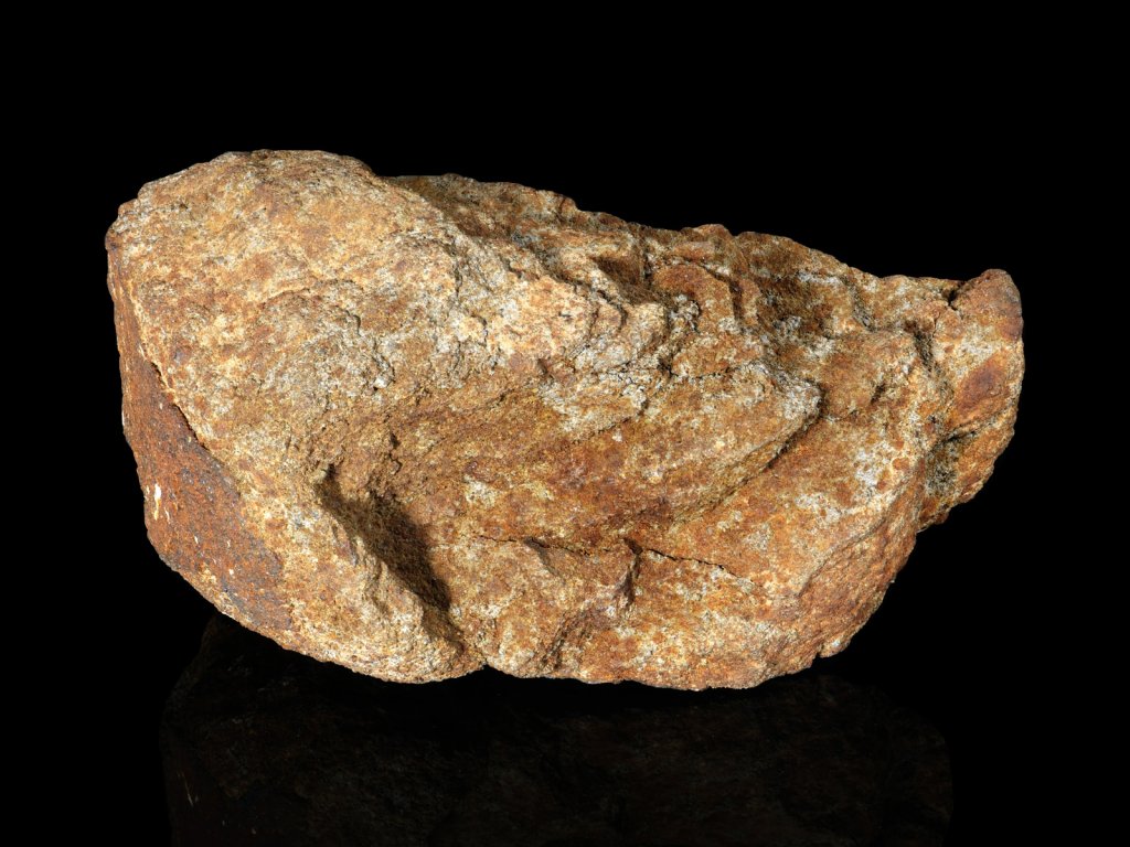 The first thing that strikes you is its size. This chondrite, weighing almost 7 kilograms, must have created an amazing fire show as it flew through the atmosphere. Evidence of this can be seen in its elegant crust. The crust was formed as a result of the enormous temperatures to which this rock was exposed after 4.5 billion years of undisturbed movement through space.