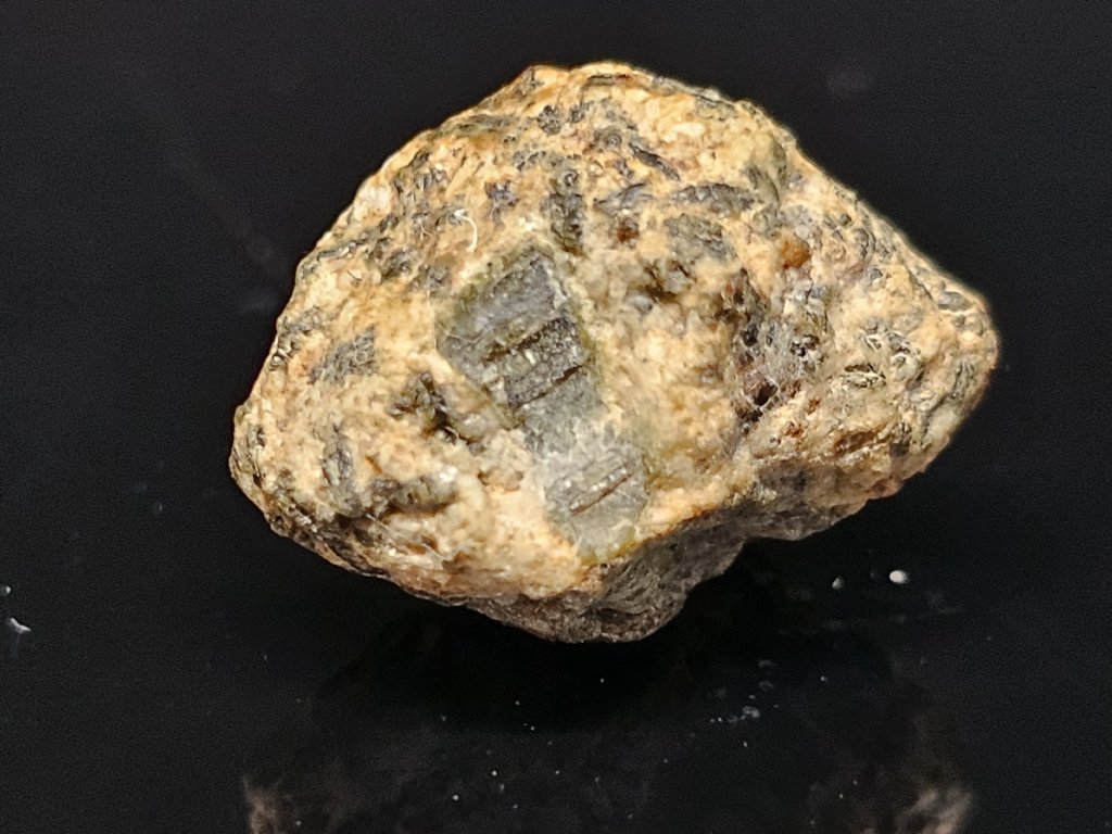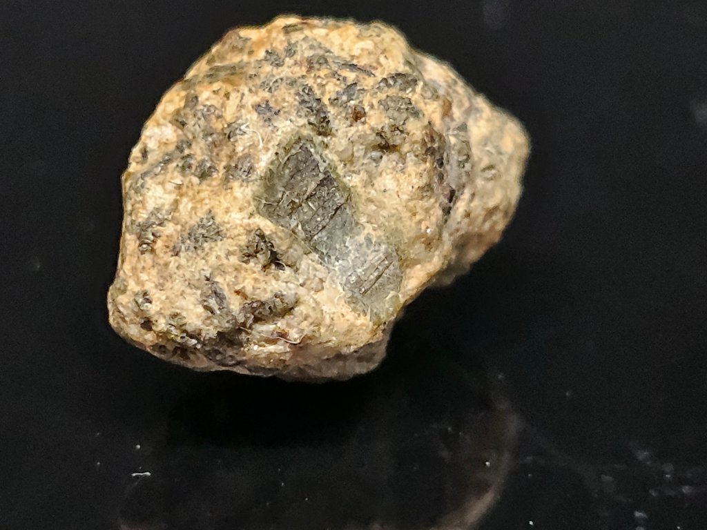 This particular piece has a dominant pyroxene crystal of regular shape at its center. A truly beautiful piece.