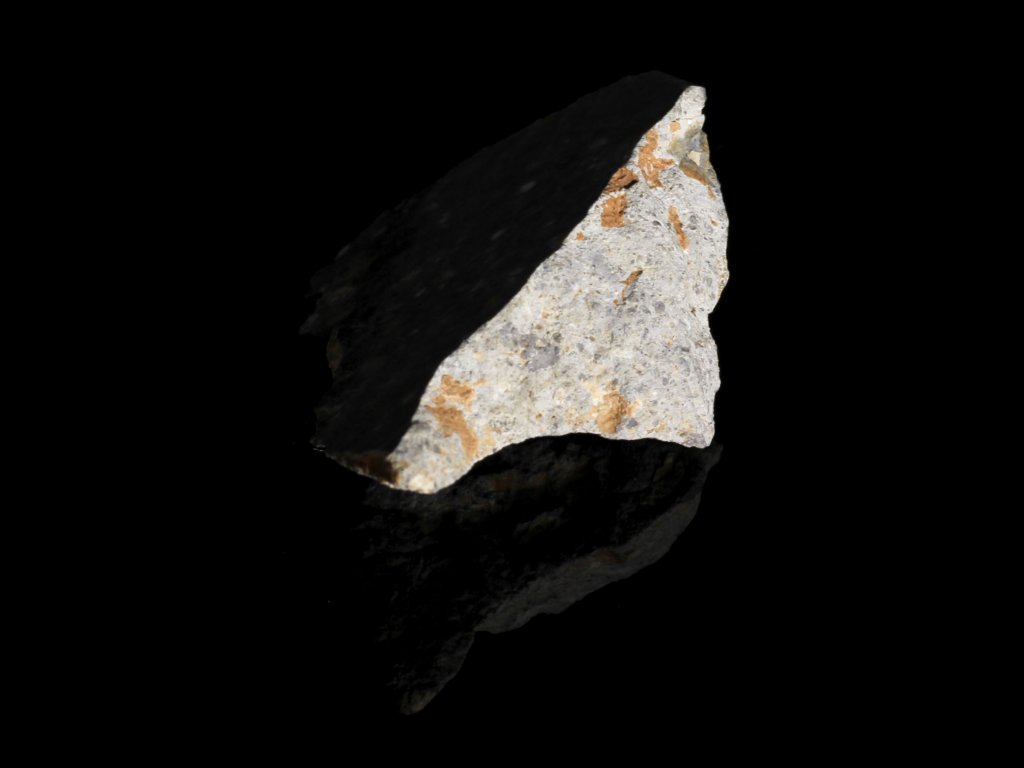 This particular piece, found in 2022 in the Bechar locality in western Algeria, stands out for its narrow profile that makes it offer a large cross-sectional area with a relatively small mass. The fascinating structure of the lunar rock can thus be well studied.