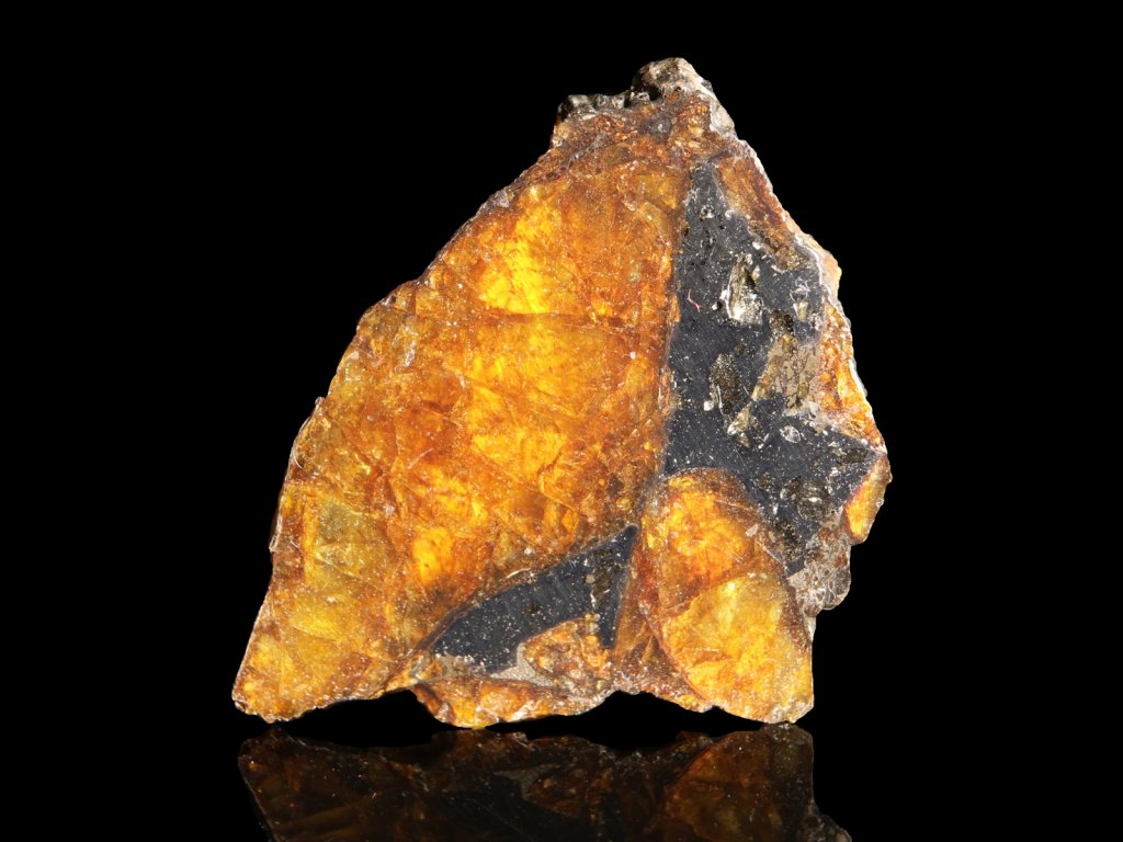 Kromě vědecké a sběratelské hodnoty zaujme i svou estetikou. Obrovské průsvitné, žlutohnědé krystaly olivínu jsou zasazeny do lesklé matrice, čímž vytvářejí fascinující vesmírnou mozaiku propojující přírodní krásu s miliardy let starou historií kosmu.