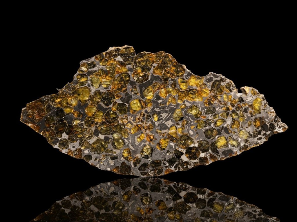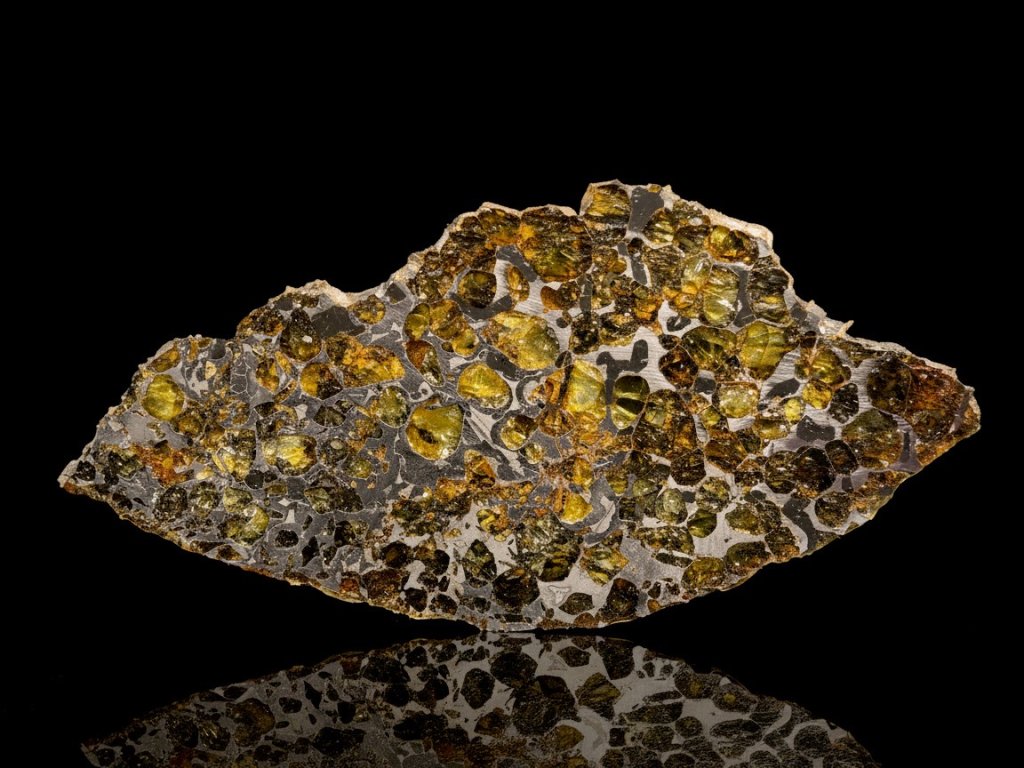 Tento meteorit Seymchan představuje jednu z nejestetičtějších forem meteoritické hmoty – pallasit.